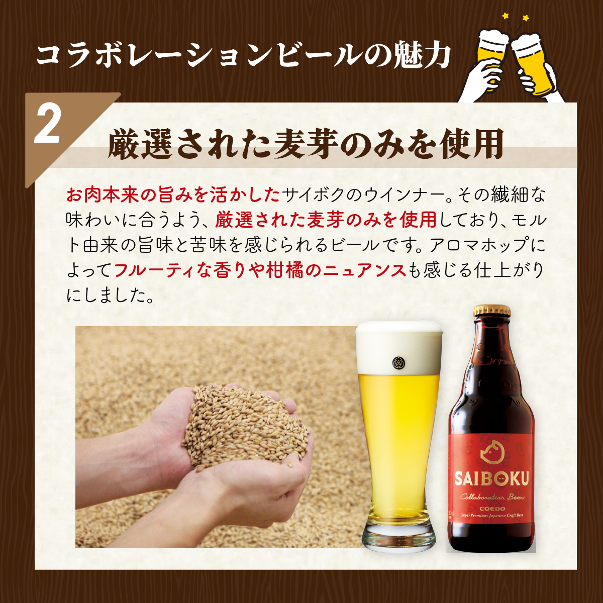 埼玉名産「サイボク」と「コエドビール」のコラボ返礼品が登場!フルーティーなアロマホップが香るIPAスタイルのクラフトビールで、ウインナーとビールの無限ループをお楽しみください!