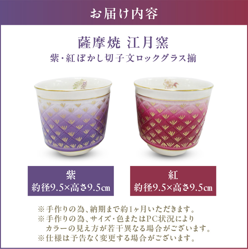 まぼろしのガラス薩摩切子の代表的な紫と紅を模したペアグラスです。