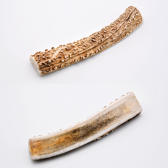 ※商品は人体や動物に影響のない重曹による消毒、洗浄をして衛生上対処しておりますが、あくまでも天然の鹿の角ですのでヤニ等の多少の汚れや匂いが残っている場合がございます。 どうしても気になる場合は、洗浄後、日陰干しを経てから天日干しでしっかり乾燥させてください。