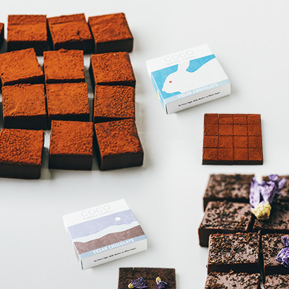 乳化剤・乳製品・白砂糖不使用、植物性素材のみで出来た体に優しいヴィーガン生チョコレート。