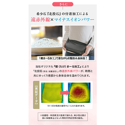※感じるのが 早い方で約10分程度、感じにくい方でも1時間以上の着用で岩盤浴がお分かりいただけると思います。