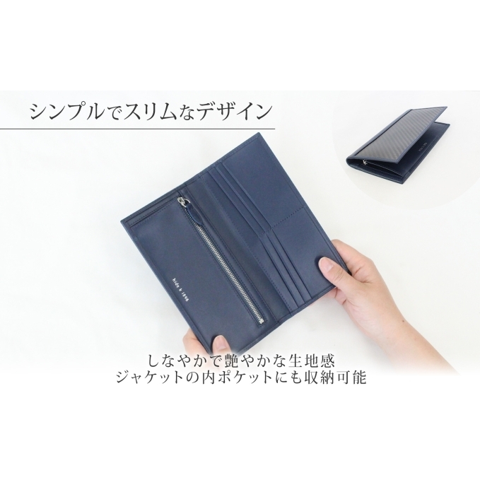 新素材ソフトカーボンを使用した長財布は、手触りが心地よく、スリムなデザイン。