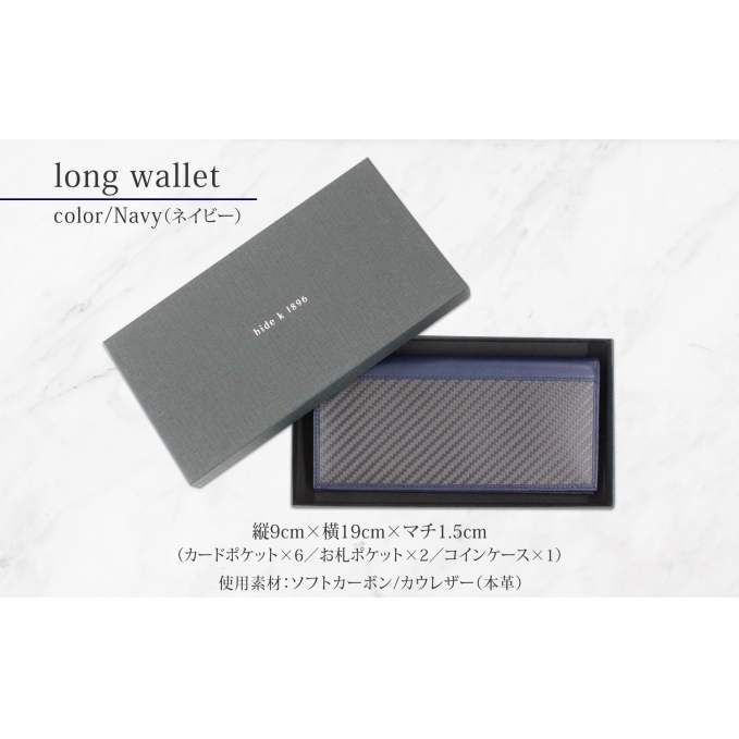 hide k 1896 ソフトカーボン ロングウォレット 長財布【ネイビー】long wallet navy 横19cm×縦9cm×マチ1.5cm メンズ財布 サイフ 札入れ カード コインケース 本革 カウレザー 長野県長野市 小物
