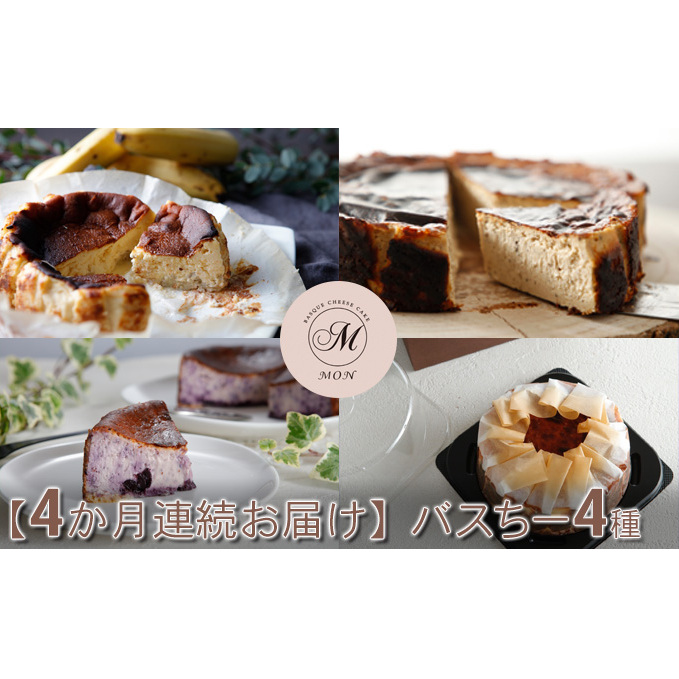 【4か月連続お届け】バスクチーズケーキ専門店MONのバスちー4種(いつものちびちー・ごろごろバナちーミニ・ほうじ茶ラテバスちー・ブルーベリーバスちー)毎月1種ずつお届け! スイーツ 洋菓子 デザート 洋菓子詰め合わせ