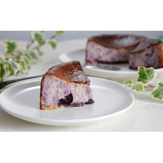 長野市の高地で自然の恵みに育まれたブルーベリーをたっぷりと使用。クリームチーズに生クリームとブルーベリー果実を混ぜ合わせ、自家製ブルーベリージャムを底に敷き詰めくちどけ滑らか、ブルーベリーの酸味が爽やかにしっとり柔らかく、濃厚で生地の紫色はブルーベリーの色をそのままに風味豊かに作り上げました。