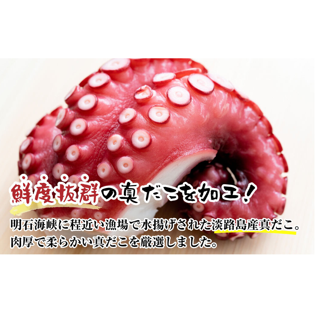 たこ本来のジューシーな食感と淡路島の「藻塩」での味付けによって、ご飯のおかずやお酒のおつまみ、お弁当のおかずにもお楽しみいただけます。