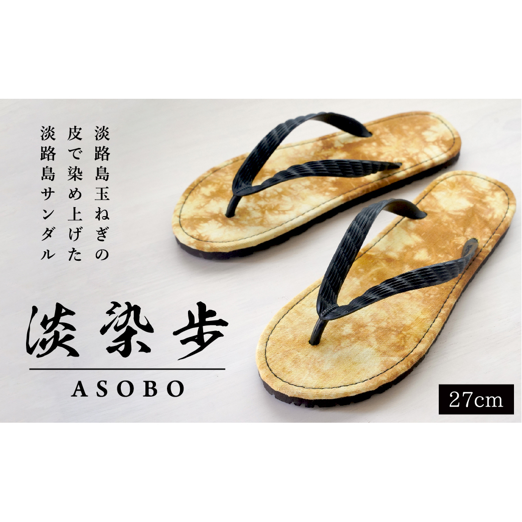 淡染歩(ASOBO)とは、淡路島の特産品を使用し自然染色させたサンダルで楽しく歩いて頂きたい。との思いで名付けました。