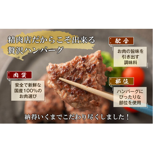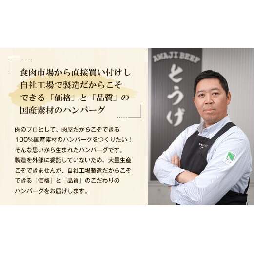精肉店だからできる、国産牛・国産豚・国産鶏100%、淡路島玉ねぎ100%のハンバーグです。