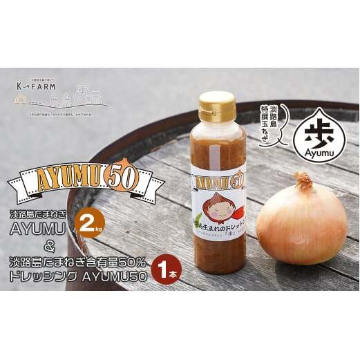 7. 淡路島たまねぎ 歩-AYUMU-2kgと淡路島たまねぎ含有量50%ドレッシングセット  [玉ねぎ 産地直送 玉葱]