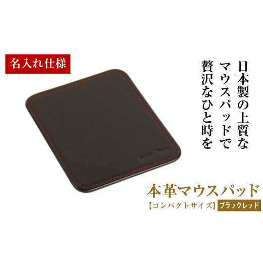 【名入れ仕様】本革マウスパッド【コンパクトサイズ】(ブラックレッド)*革がブラック、縫い糸がレッド