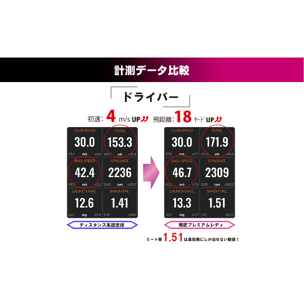 ◯ゴルフ界で高反発ボールを生み出したパイオニアである「飛匠シリーズ」から、もっともっと飛ばしたいという女性ゴルファーのために開発した高反発ボール