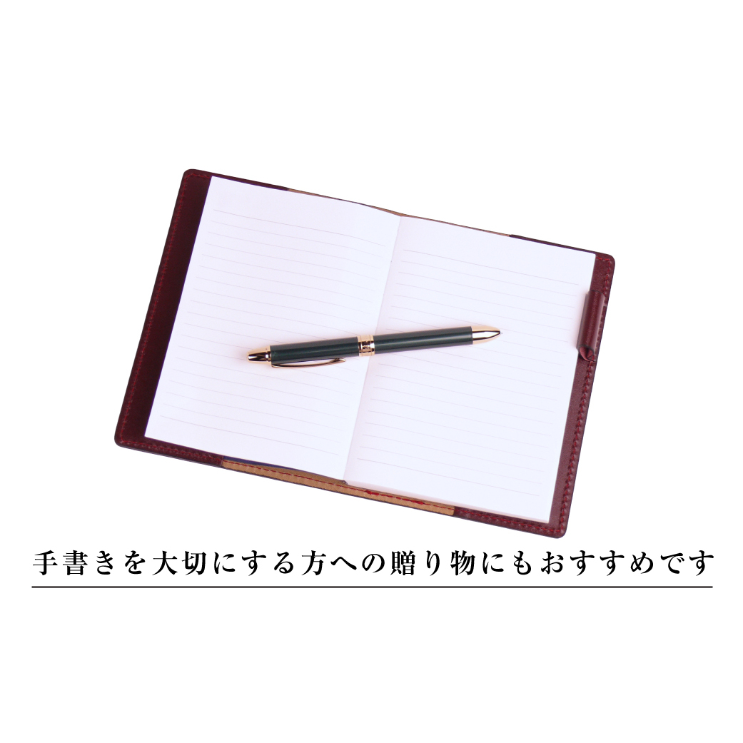 上質な本革の質感と無駄を省いたシンプルな構造が魅力のA6日本製ノートカバー。ビジネスでもプライベートでも使いやすく、手書きを大切にする方への誕生日や父の日、就職祝いなどの贈り物にもおすすめです。