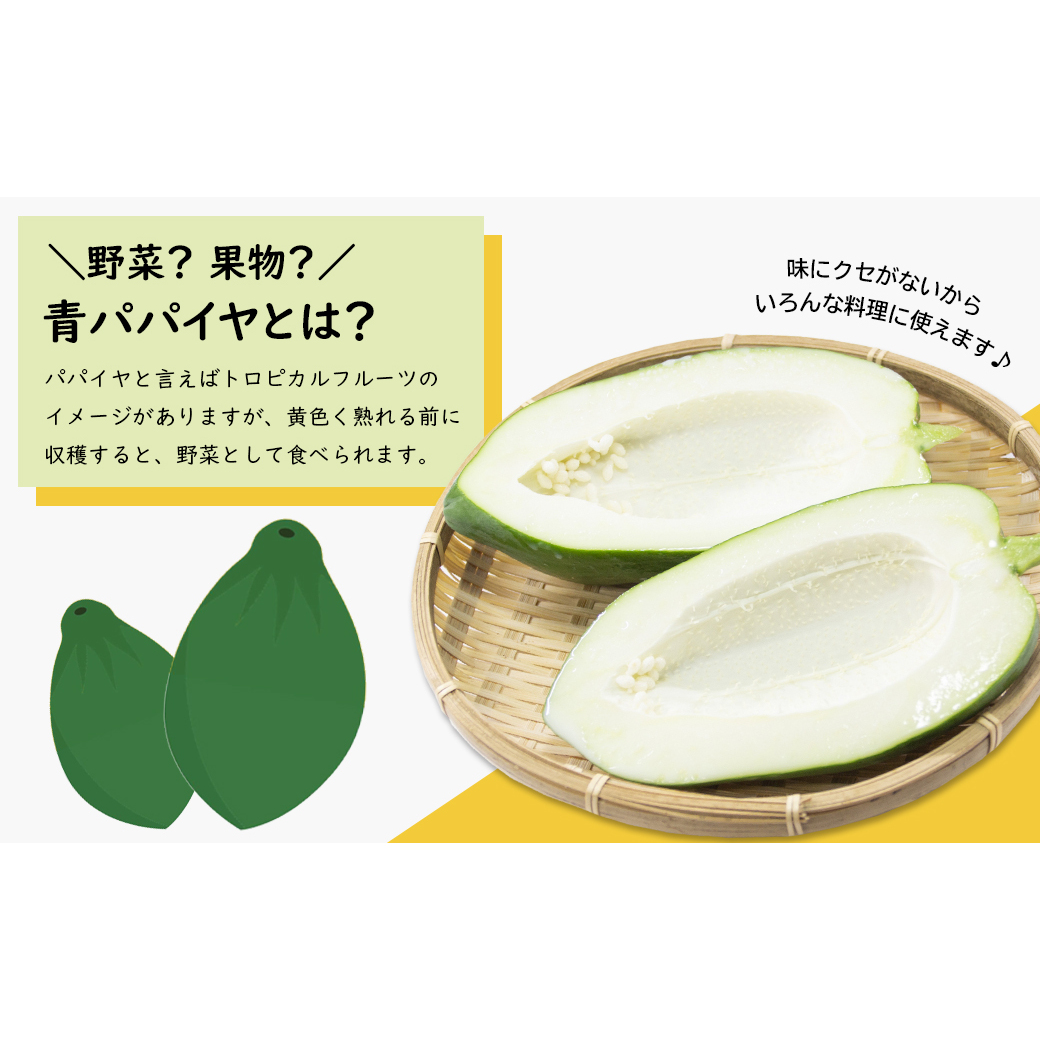 ・栄養が豊富で、抗酸化作用や健康維持にも注目される青パパイヤ。
