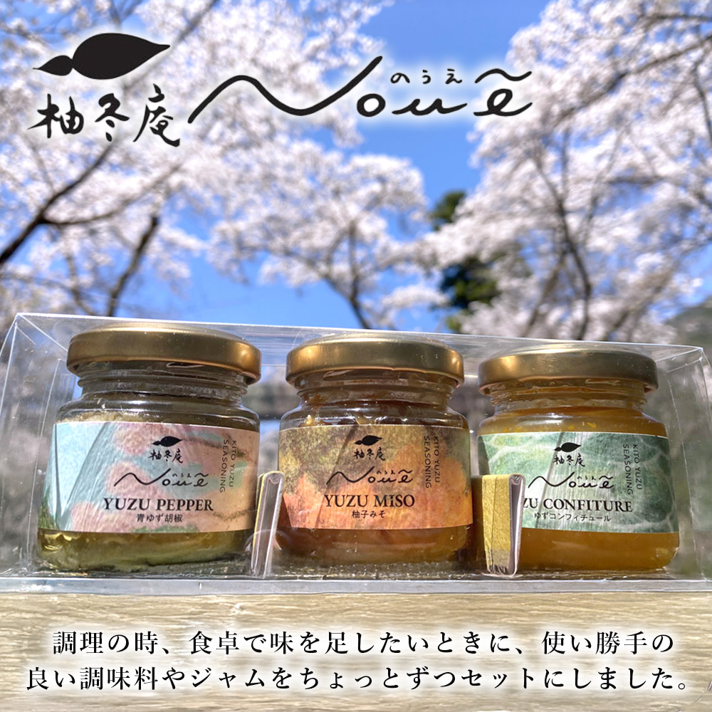 NOUE 3個セット 各40g(青ゆず胡椒・ゆずコンフィチュール・柚子みそ)【徳島県 那賀町 木頭ゆず 柚子 ユズ 木頭柚子 果物 国産 100% 調味料 柚子胡椒 ゆず胡椒 ゆずみそ 柚子味噌 ジャム ゆずジャム 瓶詰め 果汁 ギフト プレゼント お取り寄せ 柚冬庵】YA-80