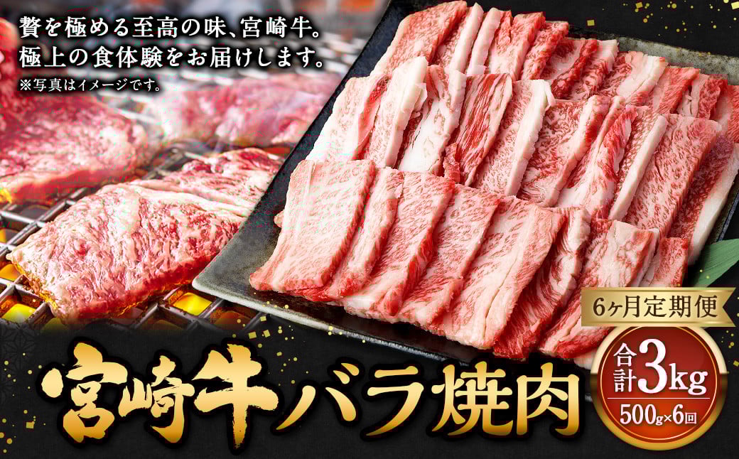 【6ヶ月定期便】<宮崎牛バラ焼肉 500g(1パック:500g×6回)> お申込みの翌月下旬頃に第一回目発送(12月は中旬頃) 牛肉 お肉 肉 和牛 新生活応援 卒業祝い 就職祝い 入学 卒業 お花見 引越し
