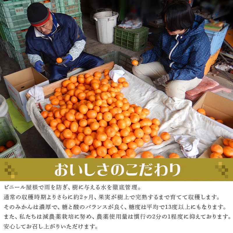 果実が樹上で完熟するまで育てて収穫します。 そのみかんは濃厚で、糖と酸のバランスが良く、