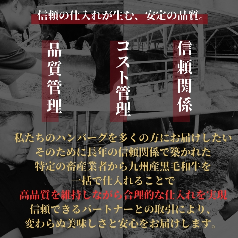 厳選した九州黒毛和牛の6つの部位をハンバーグのためだけに仕入れ