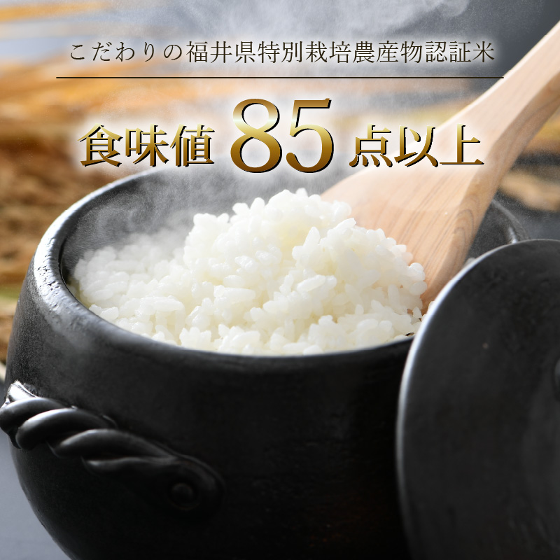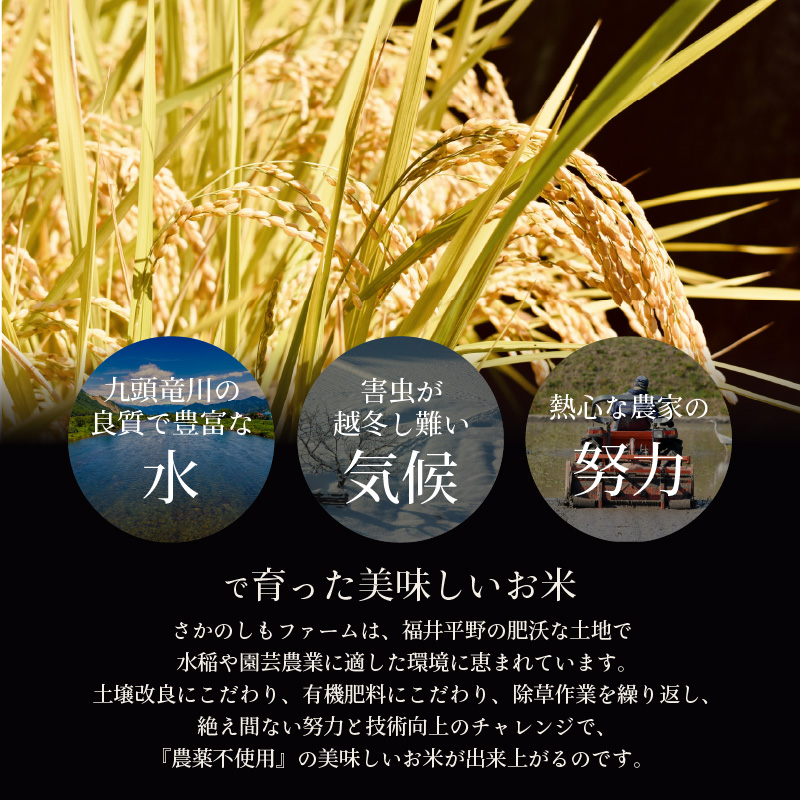 化学肥料不使用、有機肥料を使用し農薬を使わない栽培方法で作った安全・安心のコシヒカリです。
