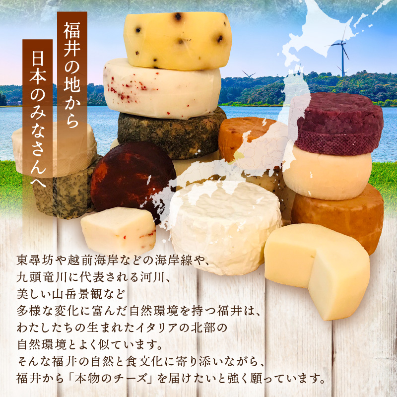 東尋坊や越前海岸などの海岸線や、九頭竜川に代表される河川、美しい山岳景観など多様な変化に富んだ自然環境を持つ福井は、わたしたちの生まれたイタリアの北部の自然環境とよく似ています。そんな福井の自然と食文化に寄り添いながら、福井から「本物のチーズ」を届けたいと強く願っています。