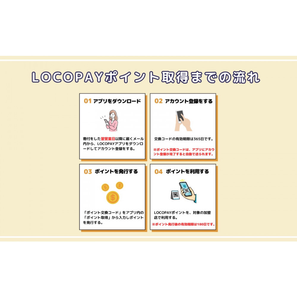 1、当サイトで寄付をいただくとご登録いただいているメールアドレス宛に翌営業日以降「LOCOPAYダウンロードのご案内」を送らせていただきます。