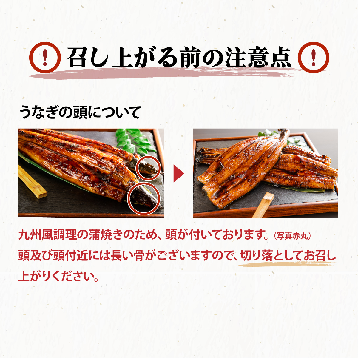 ・うなぎの蒲焼について:こちらのうなぎは九州風に調理されているため、頭付きです。頭付近に長い骨が残っているため、食べ始める前に切り落としてください。