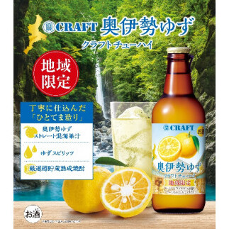 奥伊勢 ゆず クラフトチューハイ 330ml×12本/ 道の駅 奥伊勢おおだい 熟成 焼酎 柚子 果汁 お酒 地酒 地酎ハイ 地チューハイ カクテル ご当地 瓶 お取り寄せ ご自宅用 家庭用 贈答用 お酒好き ギフト 三重県 大台町 (00111)