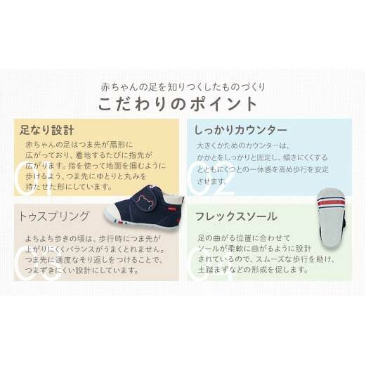 よちよち歩きを始めた赤ちゃんの正しい歩行をサポートするファーストシューズです。