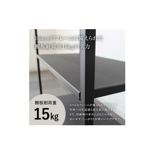 また、スリムな見た目に反し、棚板1段あたりの耐荷重は15kg。