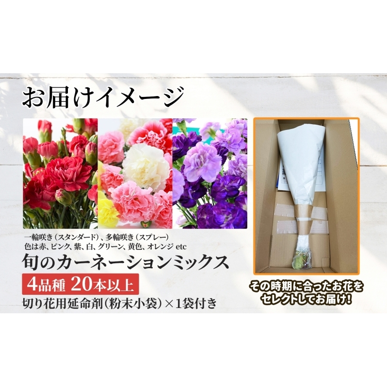 <2025年6月~8月まで3ヵ月連続お届け>北海道 カーネーション ミックス 4品種 20本以上 花 花束 切花 ブーケ 旬 季節 生花 フラワー アレンジメント