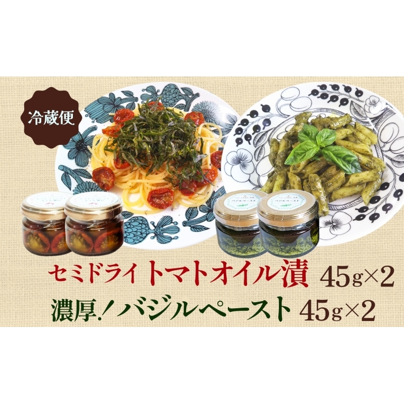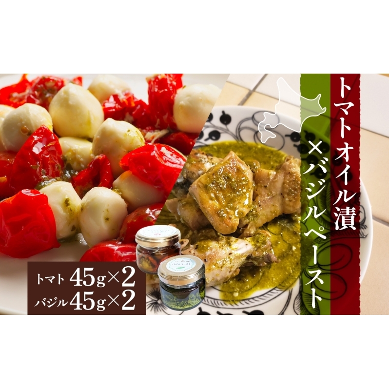 北海道 野菜 瓶詰め 2種 セット〈小〉バジル ペースト セミドライ トマト オイル漬け 各45g 各2個 計4個 ハーブ オリーブオイル 乾燥野菜 国産 パスタ ピザ バケット 保存食 ギフト 瓶