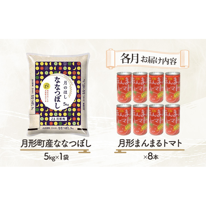 北海道月形産ななつぼし5kg+月形町産完熟トマト「桃太郎」使用『月形まんまるトマト』8本 4ヵ月連続 定期便 お米 果汁飲料 野菜飲料 トマトジュース