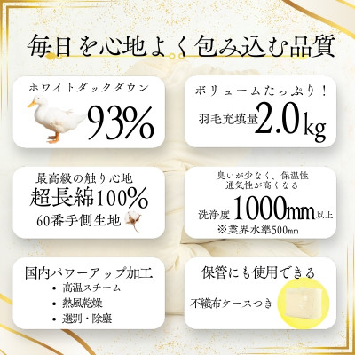 ホワイトダウン93% 2.0kg入り