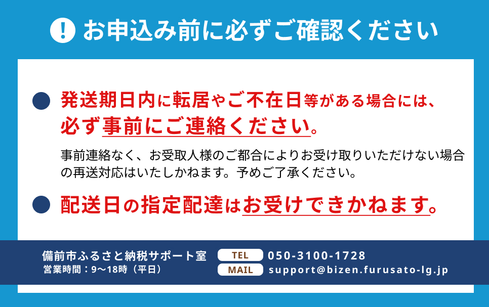 ※発送期日内に転居やご不在日等がある場合には、必ず事前にご連絡ください。