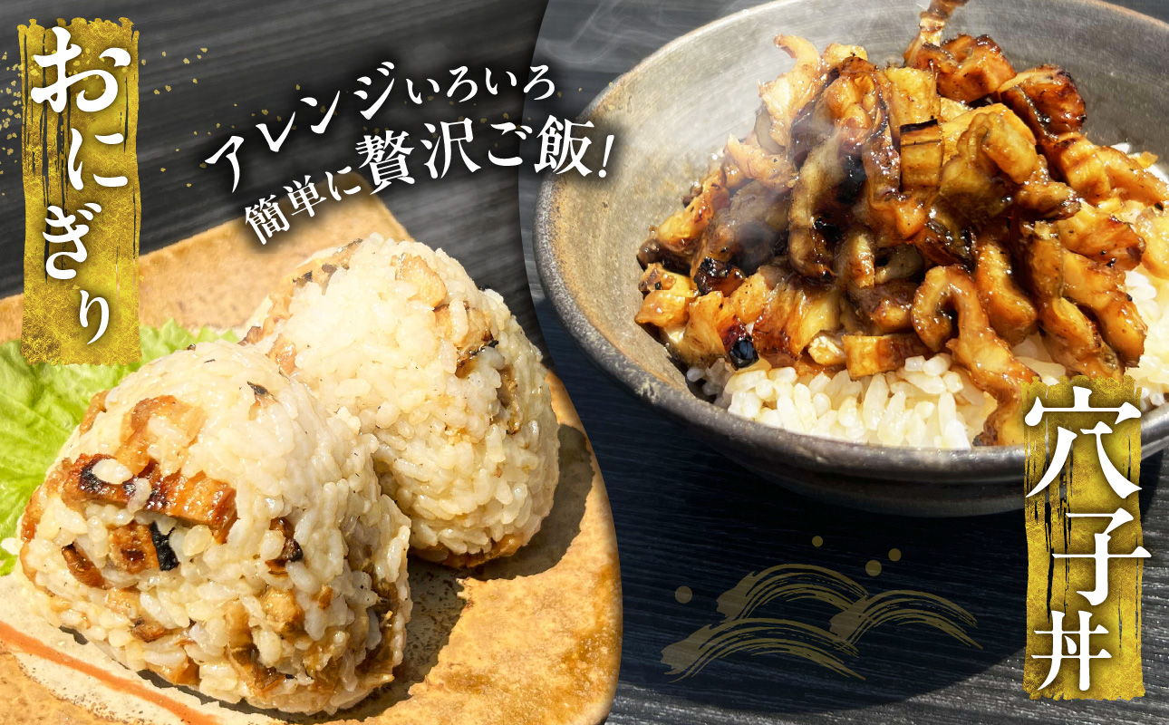 付属のタレをかけて、穴子丼やおにぎり、またちらし寿司、酢の物、穴子入卵焼き、穴子茶漬けなどにもどうぞ。