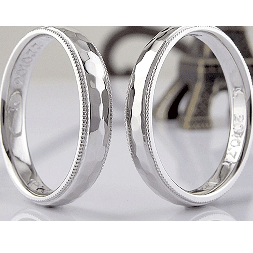 シンプルな指輪の側面に槌目をすることで特徴的な模様となり、手の表情によっては光を反射してくれます。