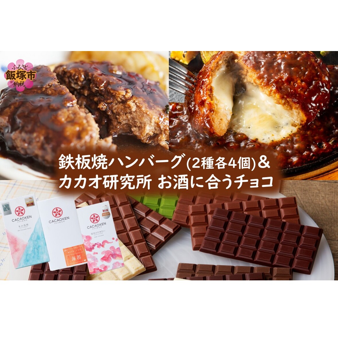 鉄板焼ハンバーグ(2種各4個)&カカオ研究所 お酒に合うチョコ【B4-064】