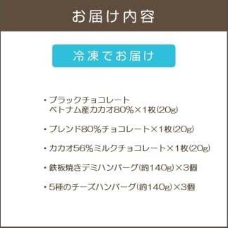 【5種のチーズ入り鉄板焼ハンバーグ】食肉(豚肉、牛肉、鶏肉)、たまねぎ、牛スープ(食塩、香辛料、たまねぎ、牛肉)、パン粉、りんごパルプ、水あめ、ナチュラルチーズ、植物油、牛脂肪、小麦粉、トマトペースト、砂糖、食塩、ポークエキス、脱脂粉乳、マッシュルーム、乳たん白、ビーフエキス調味料、たん白質濃縮ホエイパウダー、液卵白、バター、ぶどう糖、しょう油、ワイン調整品、たん白加水分解物、卵白末、甘辛しょう油ソース、香辛料、砂糖加工品、醸造酢、ゼラチン、還元水あめ、トマト風味ソース、チーズフード、ミルポワパウダー、牛乳、ポークエキスパウダー、にんにく、全卵末、酒粕パウダー、デキストリン、酵母エキスパウダー、ラカンカエキス/加工デンプン、カラメル色素、調味料(アミノ酸等)、増粘剤(加工デンプン、増粘多糖類)、酸味料、セルロース、乳化剤、香料、(一部に卵・乳成分・小麦・牛肉・大豆・鶏肉・豚肉・りんご・ゼラチンを含む)