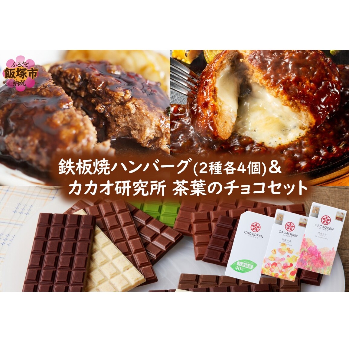 7. 鉄板焼ハンバーグ(2種各4個)&カカオ研究所 茶葉のチョコセット【B3-089】