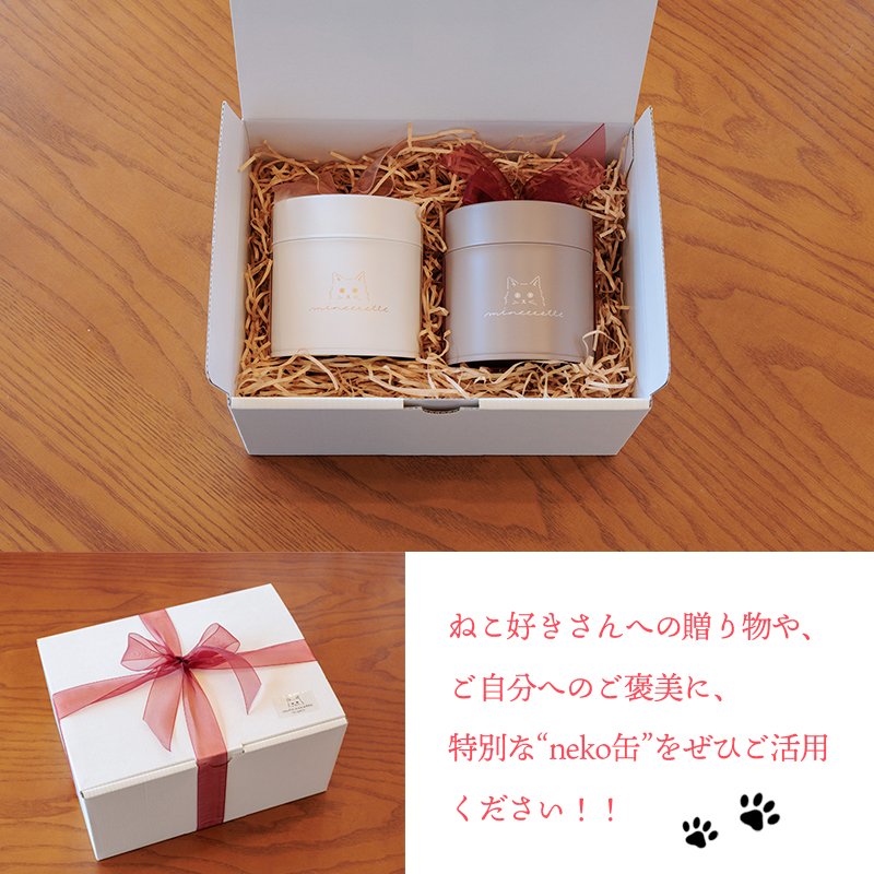 かわいい猫のロゴが目印。高原町のカフェmineeeette(カフェミネット)のオリジナルクッキー、焼き菓子のセットです。 ねこ好きさんにうれしい、可愛らしい見た目だけでなく味にもこだわり、フランス産の小麦粉や北海道産のバター、高原町産米粉などを使用し、香り高く、サクッとホロっと優しい口当たりです。 看板猫ミネットちゃんがプリントされた缶は食べ終わった後は小物入れにもぴったり。 ほっと一息つきたいティータイムのお供、のんびりした休日のブランチなど、 ご自分へのご褒美や大切な方への贈り物など、特別な“neko缶”をぜひご賞味ください!! 【cafe mineeeete(カフェミネット)へようこそ!】 2021年12月に宮崎県高原町にオープンした可愛い猫がモチーフになっているテイクアウトカフェです。 皆さんに美味しく召し上がっていただくため素材にこだわり、小麦粉はフランス産、バターは北海道産のものを贅沢にたっぷり使用しています。 店頭ではマフィンの他に、子供も大人もワクワクが止まらないアイシングクッキーや、ゆったりとした時間を過ごすのにピッタリな様々なドリンクも提供しています。 お近くにお越しの際は、ぜひお店にお立ち寄り楽しい時間をお過ごしいただけると幸いです。