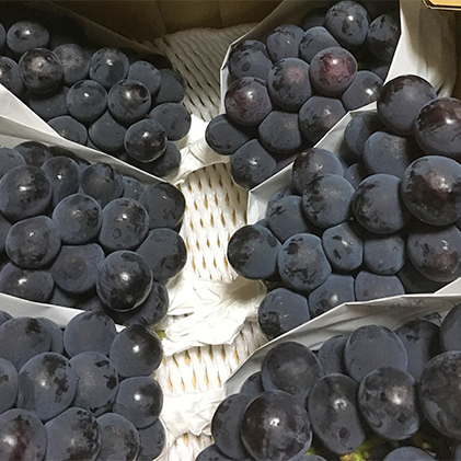 みずみずしい果実、上品な甘み、心地よい爽やかな酸味が特徴の黒ブドウです。巨峰よりもやや大粒で巨峰の酸味にマスカットのまろやかな甘みを加えたような味わいのぶどうです。ご家庭用からギフト用にまで幅広く人気のあるぶどうです。