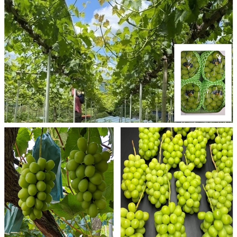 シャインマスカットはその美しい緑色と大粒の果実が特長の青ぶどうです。