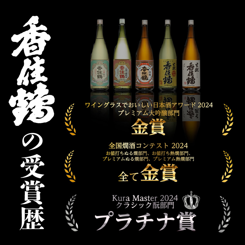 香住鶴の生もと造りや山廃仕込の普通酒は、各コンテストで金賞受賞し、ハイレベルな味わいが定評となっています。