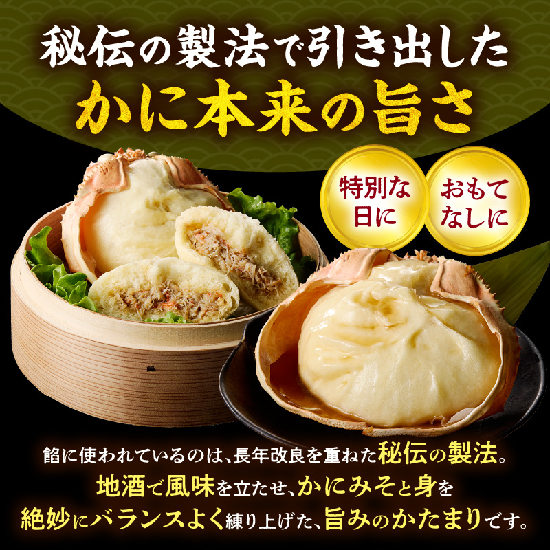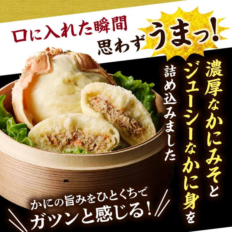 地元で水揚げされた香住ガニのかにみそと、かに身がぎっしり詰まった中華まん。