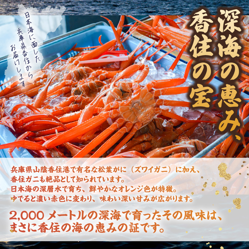 香住産の香住ガニ(ベニズワイガニ)は、甘みたっぷりでみずみずしい身が魅力。
