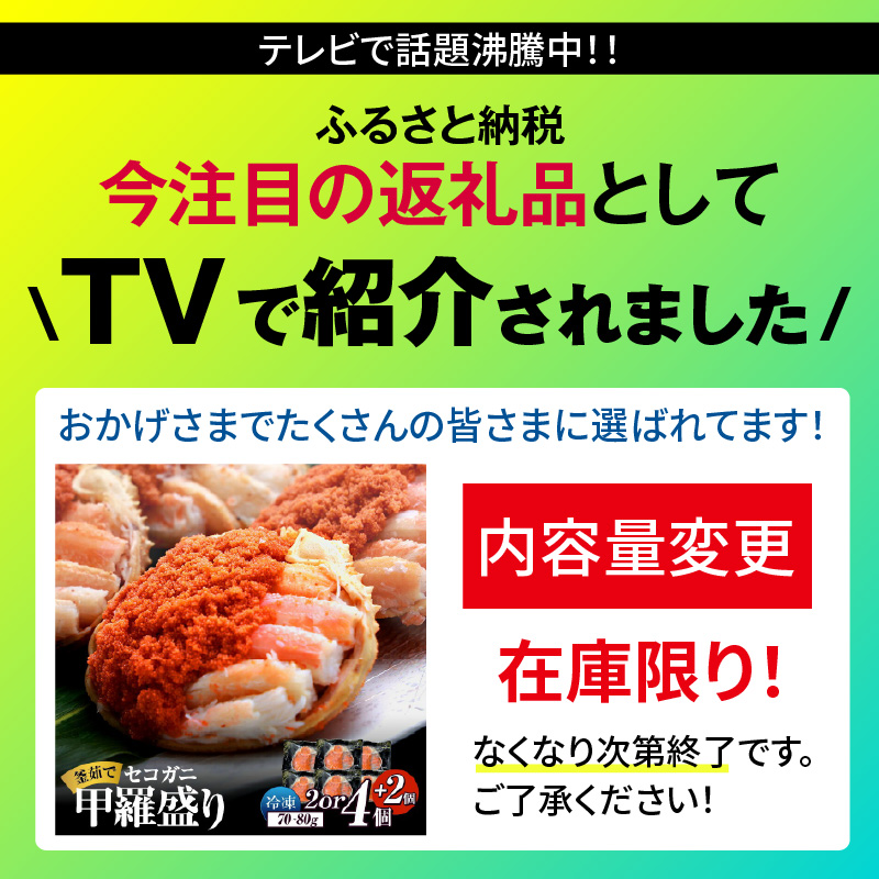 希少なセコガニを是非、ふるさと納税で味わってみてください。