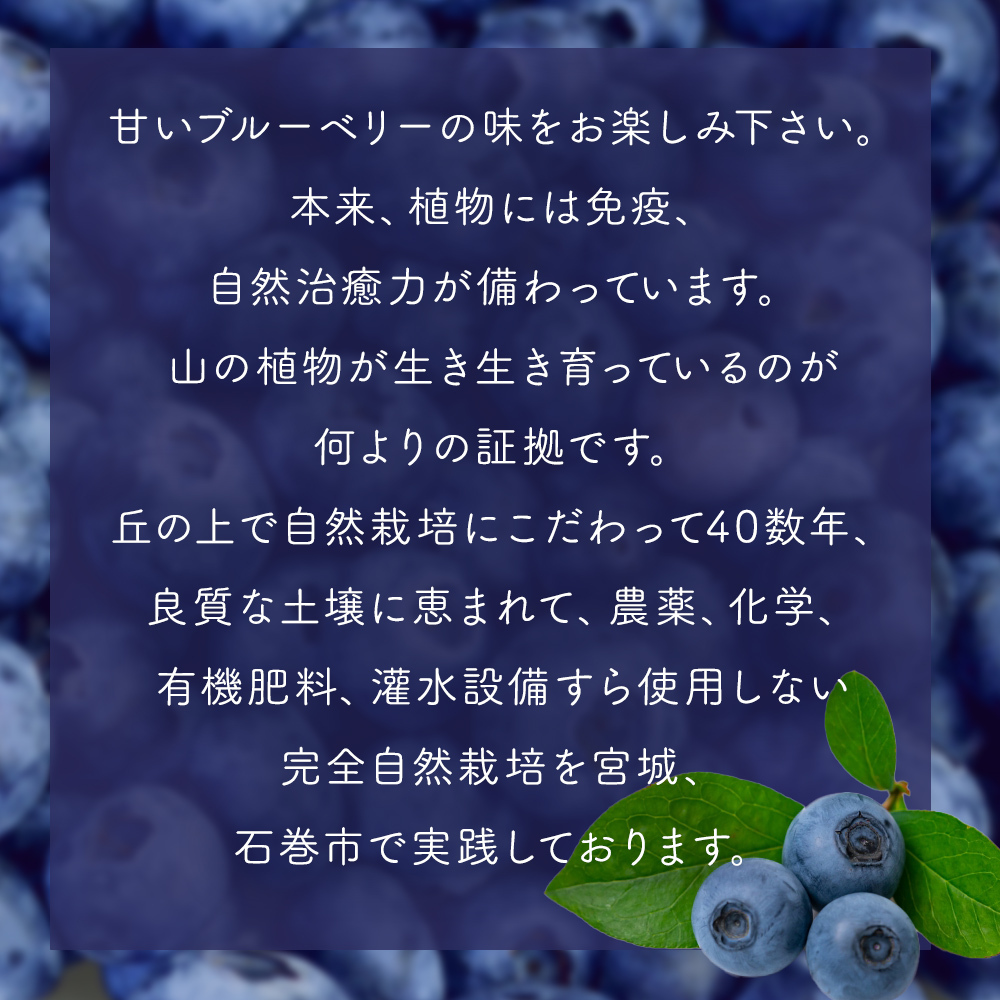 どうか、この奇跡のブルーベリーを味わって見て下さい。きっと自然の力を味覚で感じると思います。