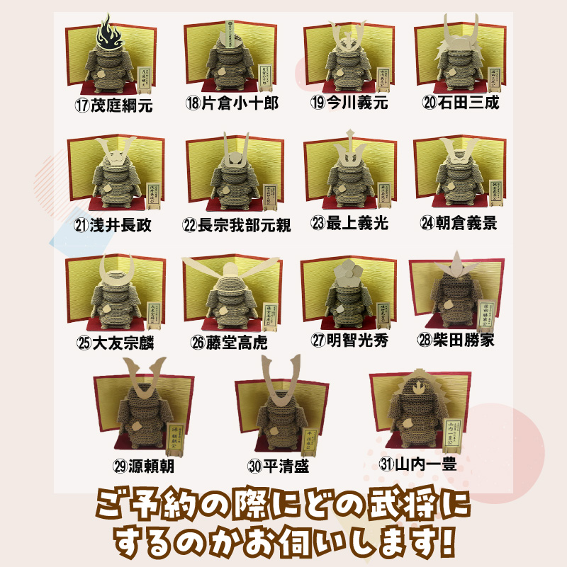 32種類の武将(兜飾り)からお好きなのをお選びいただけます!