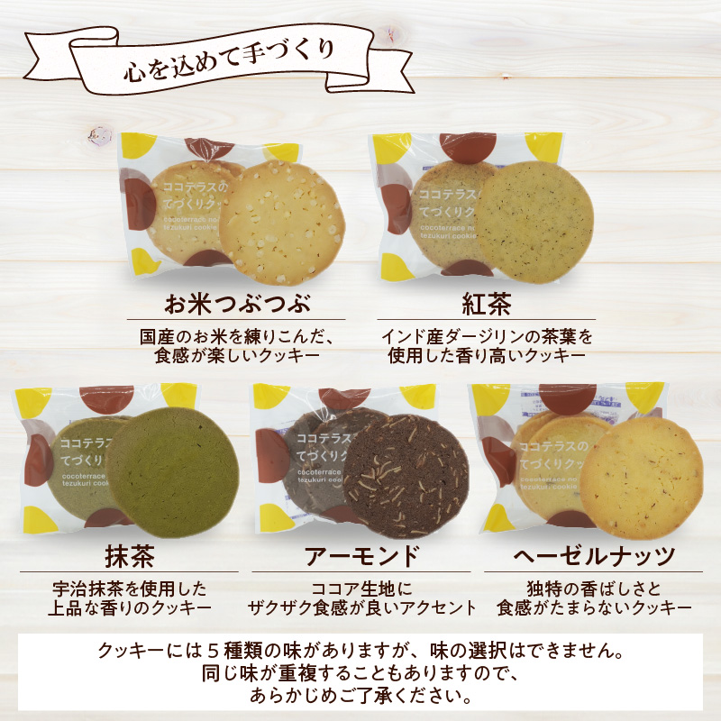 紅茶クッキー・アーモンドクッキー・まっちゃクッキー・お米つぶつぶクッキー・ヘーゼルナッツクッキー