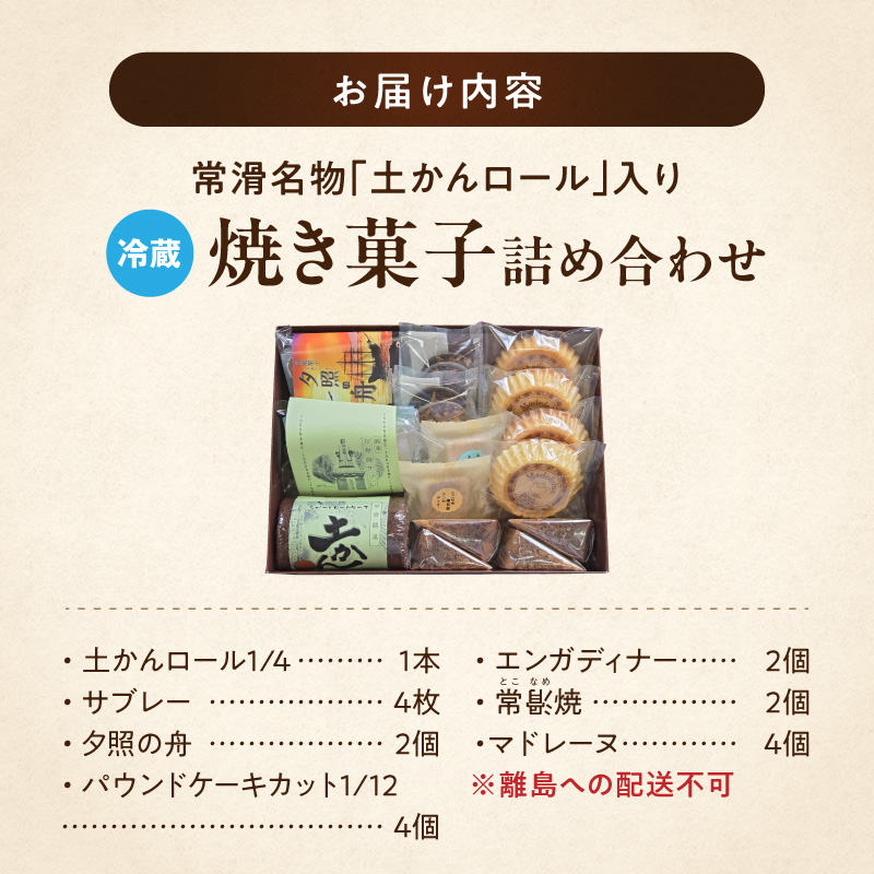 全国観光土産品連盟会長賞を受賞した人気商品「土かんロール」を、お求めやすい1/4サイズにして、当店自慢の焼き菓子と一緒に詰め合わせました。