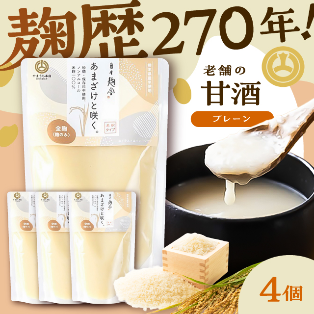 当店の甘酒は、熊本県産の米と米麹のみを原料に、昔ながらの製法で丁寧に作られています。